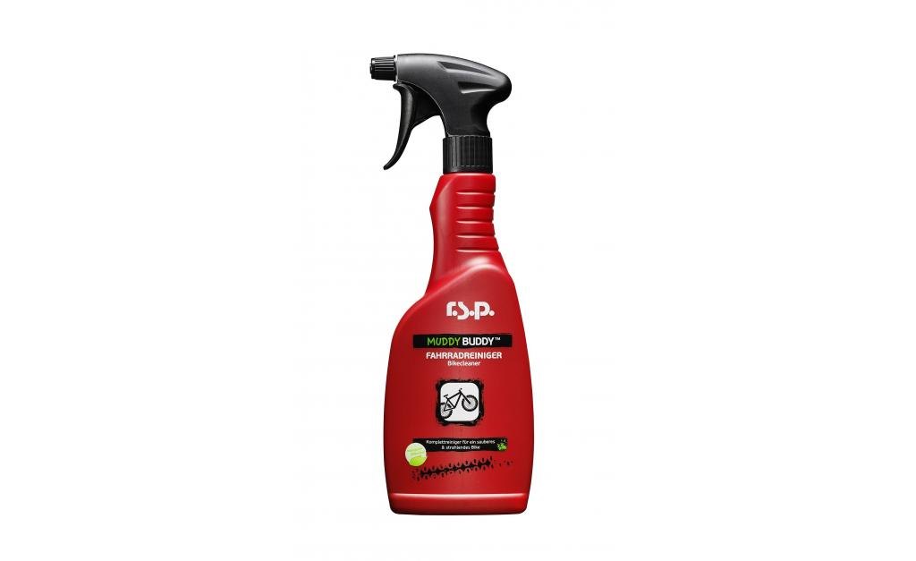ČISTIČ RSP MUDDY BUDDY Doporučujeme na matné barvy rámů. Muddy Buddy=konec kartáčům a hader při čištění. Po čišění nezanechává stopy. 500ml rozprašovač Jemný pěnící prostředek na mytí kol. Pění při aplikaci na rám, příjemně voní. Neobsahuje fosfáty ani halogenidy, je biologicky odbouratelný a ředitelný vodou.